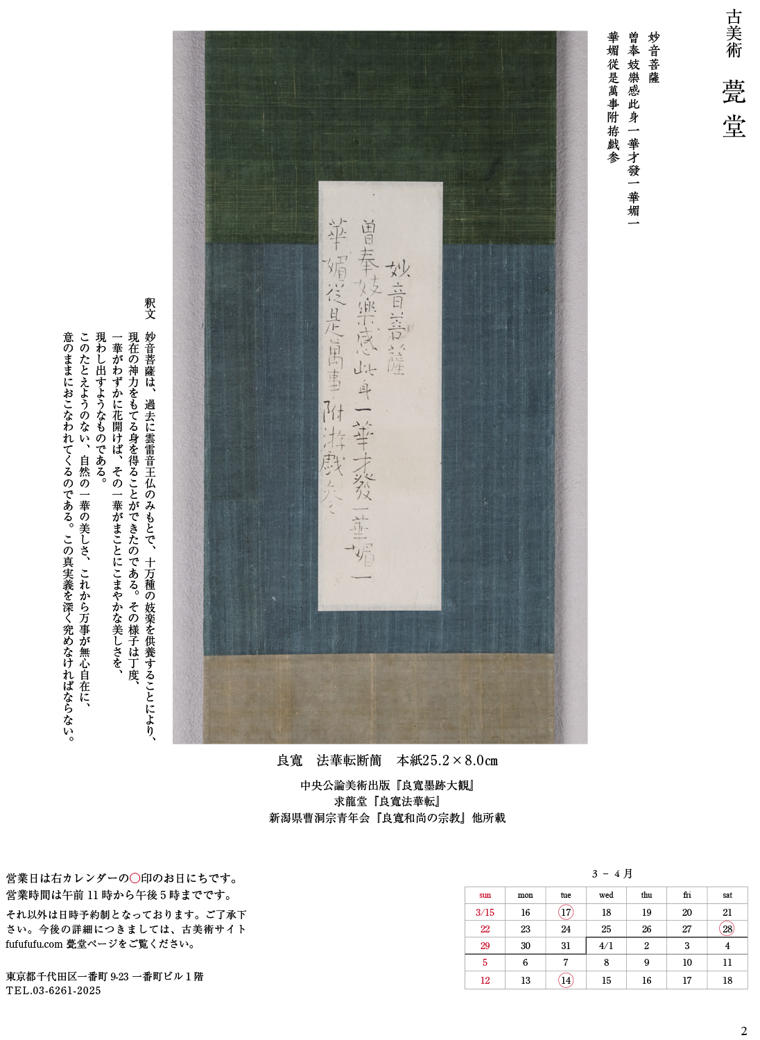 Ceramics|やきもの 塩笥のうたげ見立ててたのしむ万能のうつわ 塩笥のうたげ見立ててたのしむ万能のうつわ 『目の眼』2026.4月・5月号 唐澤昌宏(国立工芸館館長)・北島輝一(アートフェア東京代表) アートマーケットと工芸の力 アートマーケットと工芸の力 Ceramics|やきもの 2026年1月15日発売 須恵器 世界を変えたやきもの 須恵器 世界を変えたやきもの 『目の眼』2026.2&3月号 『目の眼』電子増刊第8号 発売中 春の骨董めぐり日本橋・京橋・銀座 春の骨董めぐり日本橋・京橋・銀座 『目の眼』デジタル月額読み放題サービス 読み放題をはじめる雑誌『目の眼』の全てが読み放題 月額サービスのご案内 RECOMMEND おすすめ 『目の眼』2026年4・5月号 塩笥のうたげ “なにか”を秘めた粉引盃 Ceramics | やきもの イベント紹介|東京アートアンティーク2026 春のアートイベントに行こう!東京 日本橋・京橋・銀座 界隈 Others | そのほか COLLECTION | PR 3/16発売|目の眼 2026.4-5月号「塩笥のうたげ」 展覧会情報|京都国立博物館 京都国立博物館「縁を結ぶかたな」―刀剣鑑賞の視点― Armors & Swords | 武具・刀剣 唐澤昌宏(国立工芸館館長)・北島輝一(ART FAIR TOKYOマネージングディレクター) 対談|アートマーケットと工芸の力 Others | そのほか COLLECTION | PR 日本の文化を生きた男―青山二郎伝 第1回 ウェブ連載①/森 孝一(美術評論家) 世界の古いものを訪ねて#13 青と白のアズレージョ。雨のポルトで、古いタイルの温度にふれて History & Culture | 歴史・文化 フリーメイソンの懐中時計 Vintage Masonic トライアングルポケットウオッチ Ornaments | 装飾・調度品 『目の眼』リレー連載|美の仕事(先行公開) 原研哉さんが注目する石や石造物〜国東の石塔 Others | そのほか 編集部のお勧め記事をもっと読む SHOP GUIDE 美術店ガイド 古美術 甍堂 東京・関東 その他のエリア(東京・関東) 天宝堂 日本橋・京橋(東京) 稲村美術 日本橋・京橋(東京) 茶道具商 ながさか 名古屋(愛知) honogra 東京・関東 その他のエリア(東京・関東) 木雞 日本橋・京橋(東京) しぶや黒田陶苑 東京・関東 南青山・渋谷(東京) 甲斐 日本橋・京橋(東京) 冨江洗心堂 東京・関東 その他のエリア(東京・関東) 美術店ガイドをもっと見る COLUMN コラム オークション紀行|古美術商×オークション 大聖雄幸 大聖寺屋代表 文化財はよきアンバサダー 矢野明子 大英博物館アジア部三菱商事キュレイター 秋涼の風吹く 神無月 永松仁美 昂KYOTO店主 祖父の思い出 近衞忠大 クリエイティブ・ディレクター 御宸翰(ごしんかん)に出会う デービッド・アトキンソン 小西美術工藝社代表取締役社長 フリーメイソンの懐中時計 Vintage Masonic トライアングルポケットウオッチ 大江丈治 時計評論家 着ることでしかわからない着心地 桑村祐子 高台寺和久傳 女将 コラムをもっと読む EVENTS / SHOP GUIDE 日本全国の骨董市や展覧会情報と美術店ガイド EVENTS 展覧会・企画展・骨董フェアの情報はこちら SHOP GUIDE 美術店ガイドはこちら LATEST ISSUE 骨董・古美術雑誌 「目の眼」の最新号 日本で最も読まれている骨董・古美術雑誌 骨董・古美術の魅力や、コレクションの愉しみをテーマに、様々な情報を読者のみなさまにお届けしています(紙版・デジタル版) 目の眼 電子増刊第8号 春の骨董めぐり 日本橋・京橋・銀座 デジタル月額読み放題サービス 2026年02月15日発売 880円 特集「春の骨董めぐり 日本橋・京橋・銀座」 今号では「春の骨董めぐり」と題し、日本橋・京橋・銀座エリアの骨董・古美術店や画廊を特集。江戸時代から400年以上日本の中心地として栄えるこの街には、現在もたくさんの老舗や大店が鎬を削っており、400軒以上の美術商が集まっています。そこで今回は4月下旬開催の「東京アートアンティーク」と連携し、ユニークな企画展を行う約30店を厳選して紹介しています。 桜舞う季節、街歩きとともに美しいものとの出会いをお楽しみください。 試し読み 購入する 読み放題を始める 雑誌・書籍のラインアップを見る MAGAZINES/BOOKS 目の眼 電子増刊第8号 2026年2月15日発売 目の眼2026年2・3月号No.585 2026年1月15日発売 目の眼 電子増刊第7号 2025年12月15日発売 目の眼2025年12月号・2026年1月号No.584 2025年11月14日発売 目の眼 電子増刊第6号 2025年10月15日発売 目の眼2025年10・11月号No.583 2025年9月16日発売 目の眼 電子増刊第5号 2025年8月15日発売 THE JAPANESE SWORD – THE YAMASHIRO TRADITION (English edition) 2025年9月16日発売 目の眼2025年8・9月号No.582 2025年5月15日発売 林屋亀次郎の眼 2025年6月1日発売 白磁壺頌 ── 朝鮮時代の白磁壺、その美を繙く 2025年6月18日発売 目の眼 電子増刊第4号(2025.6月) 2025年6月15日発売 雑誌・書籍のラインナップを見る NEWS お知らせ 2026年03月15日 3/16発売|目の眼 2026.4-5月号「塩笥のうたげ」 2026年02月14日 2/15発売|目の眼 電子増刊8号「春の骨董めぐり 日本橋・京橋・銀座」 2025年11月13日 お知らせ|ウェブサイトtimelesstokyo.comに目の眼をご紹介いただきました 2025年08月07日 8/13〜8/17夏季休業のお知らせ 2025年06月14日 昭和初期の実業家・林屋亀次郎の眼|目