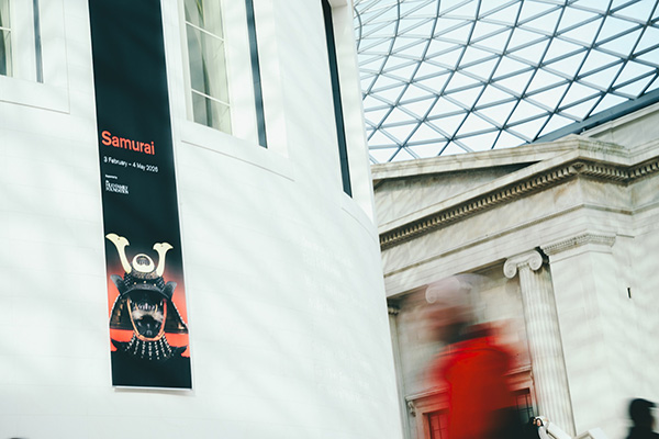 展覧会紹介|大英博物館 なぜ世界はサムライを求め続けるのか?[ロンドン・大英博物館「Samurai」展] RECOMMEND いま、世界のエンターテインメントシーンにおいて、サムライを題材にした物語はかつてないほどの熱量で迎え入れられている。配信サービスを通じて国境を越える映像作品の中で、彼らが繰り出す鮮烈なアクションや、独自のスタイルは、多くの人々の心を掴んで離さない。 こうした「サムライ熱」は、ここロンドンにおいても例外ではない。しかし、世界がこれほどまでに熱望する「サムライ」の正体とは、果たして何なのか。単なる剣豪としての格好良さなのか、あるいはそれ以上の「何か」が隠されているのか。その実像を、当の日本人である私たちはどれほど正しく認識できているのだろう。 大英博物館で開催される特別展「Samurai」は、ステレオタイプなイメージを解体し、1000年にわたる歴史の中で変容し続けてきた武士の真の姿を再発見させる展覧会である。なぜ世界はサムライを求め続けるのか。本展は世界が抱く憧れの正体を歴史に則って再定義させるとともに、日本人にとっても自国の文化を全く新しい視点で見つめ直させてくれる機会となりそうだ。 目次 出陣の夜明け。精神を包み込むインスタレーション社会階級としての武士。外交と「女性」の覚悟焼き物が語る「武」から「風流」への変容。憧れの唐物など1869.THE SAMURAI CLASS IS ABOLISHED.ダース・ベイダーなど、現代のポップカルチャーへロンドンで再発見する新しいサムライ像出陣の夜明け。精神を包み込むインスタレーション 会場に足を踏み入れてまず心を奪われるのは、そのドラマチックな演出だ。展示室を進むと、突如として出陣の夜明けを思わせるような、ブルーとピンクのグラデーションに包まれた幻想的な空間が現れる。そこには馬の駆ける音や刀が交わる音が響き、私たちの意識を瞬時に1000年の時を遡った戦場へと誘う。 古来、戦の始まりは「明け六つ」の刻限(およそ午前6時)がふさわしいとされてきたそうだ。夜が明け、世界が光を取り戻していく瞬間の、あの凛とした、しかしどこか不安を孕んだ静寂。この光と音の空間は、単なる武器や甲冑の陳列を超え、戦いの直前の静けさや、死を覚悟した者の澄んだ精神状態を、観客に肌で感じさせる。 その精神性を象徴する存在として、日本では刀が特別な意味を持ってきた。それが単なる武器ではなく、魂を宿すもの、持ち主の人格を映す鏡とされてきたことは、よく知られている。 甲冑や刀剣は、外へ強さを示すための装備である以上に、自らの内面を律するための「拠り所」のようなものだったのではないか。夜明けのような光の中に並ぶ姿を見ていると、かつての侍たちが何を大切にして生きていたのかが、理屈抜きにスッと伝わってくるような気がした。 社会階級としての武士。外交と「女性」の覚悟 欧州の地で描かれた支倉常長の肖像画も印象的だった。 1613年、伊達政宗の命を受けてローマへと渡った支倉常長。現地の絵師の手によって油彩で写し取られたその姿は、当時の日本が世界といかに密接に、そして果敢に繋がろうとしていたかを今に伝えている。彼らが早い段階から世界の潮流の中に身を置いていたことを示す肖像として、本展においても「社会における武士」を考える上で欠かせない存在だ。 社会における武士像。展示はそこを深掘りするように、徳川家康による統一後の「泰平の世」にフィーチャーした空間へと移る。ここでは武士が戦士から、官僚や行政官という「社会階級」へと固定されていく過程が描かれている。 この「階級としての武士」に女性が含まれていたという事実も興味深い。実のところ、武士階級の半分は女性が占めており、彼女たちは家政を司るだけでなく、時には武器を手に戦う「女武芸者」としての覚悟も持っていた。 しかし近代化の過程で、彼女たちの勇猛な実像は「良妻賢母」という型の中に再解釈され、整理されていった。本展は、私たちが抱いているサムライ像が後世の取捨選択によって形作られたものであるという事実を、客観的に示している。 焼き物が語る「武」から「風流」への変容。憧れの唐物など また展示全体を通じて、磁器や陶器が放つ存在感は圧倒的だった。骨董に親しむ読者には馴染み深い名品も多いが、本展ではそれらが武士の地位や正統性を象徴する道具として位置づけられている。 たとえば「Objects of desire(憧れの対象)」として並ぶのは、かつて武将たちが権威の象徴として追い求めた品々だ。大英博物館が誇る膨大な日本コレクションの中から、1300年代の中国で作られた龍泉窯の青磁といった「唐物」への根強い憧憬がある一方で、茶の湯の精神性の中で重用された、備前焼の水指のような「和物」が放つ作為のない力強さも対置されている。 そして、徳川の時代を象徴するのが、将軍家への献上品としてのみ作られた最高峰の磁器、鍋島焼だ。1700年前後に焼かれたその皿には、鮮やかな赤