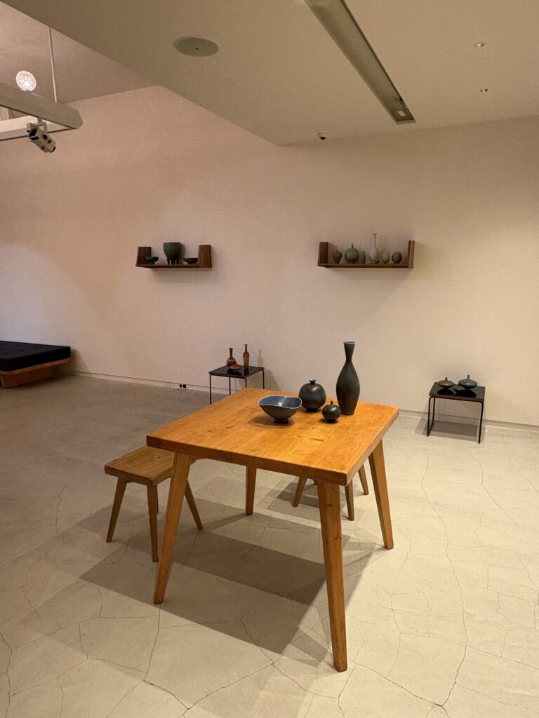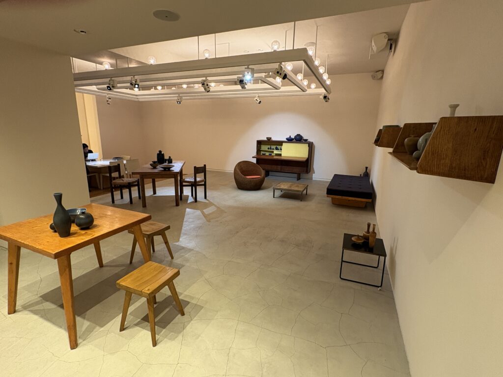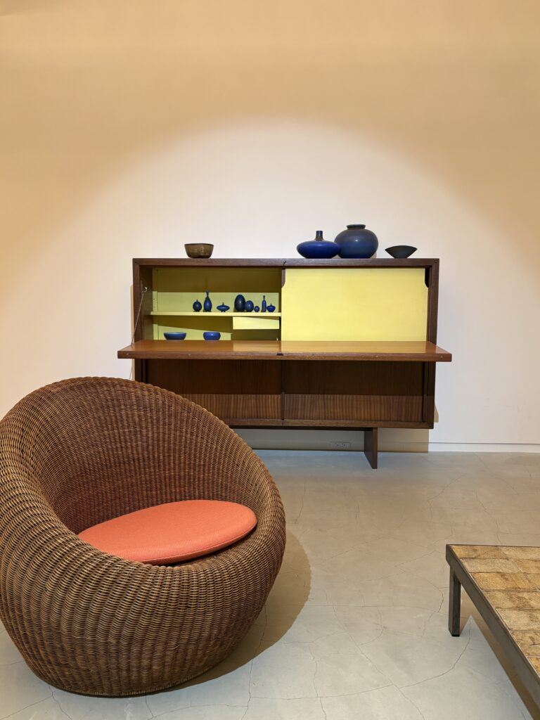 企画展紹介|Salon SCÈNE 北欧陶器とフランスのヴィンテージ家具の最先端をみる RECOMMEND 南青山にあるArt Salon SCÈNE(アートサロン シーン)で現在開催中の企画展「Dialogues in Form -北欧陶芸とフレンチヴィンテージ-」。勧める人があって訪ねたところ、たいへんおもしろかったの紹介したい。 本展は、スウェーデンを代表する陶芸家ヴィルヘルム・コーゲとベルント・フリーベリの作品を、フランスのヴィンテージ家具とともに紹介するもの。 このウォールシェルフはマルセル・ガスコアンによるもので、発表された当時からの人気作。ミニマルで木の質感を活かしたデザインはあらゆる空間で使用されてきました。(小澤さん) ヴィルヘルム・コーゲ(Wilhelm Kåge. 1889–1960)とベルント・フリーベリ(Berndt Friberg. 1899–1981)の2人はスウェーデンに生まれ、北欧デザイン最盛期のミッドセンチュリーに、名工房・グスタフスベリ製陶所で活躍した。2人は師弟関係でもあり、それぞれ独自に探求した繊細な釉薬による表現と、端正な造形で世界中に多くのファンを持ち、近年、日本の古美術コレクターにも注目されている。 デュルプトがフランスのメリベルスキーリゾートのために制作したテーブルとスツール。なかなか市場に出ない、珍しい一点です。(小澤さん) 今展では、この2人の作品と、フランスのヴィンテージ家具(シャルロット・ペリアン、クリスチャン・デュルプト、アンドレ・ソルネイ、ピエール・ガーリッシュ、ピエール・ガーリッシュ、ピエール・シャポー)らいま人気のデザイナーたちが手がけた家具とともに空間を構成しているのが見どころ。 「ジャンヌレやペリアン、プルーヴェはすでに日本でも有名で、その作品はなかなか手に入らない状態ですが、そのほかのデザイナーも、日本ではまだ広く知られていないものの、海外ではすでにコレクターに注目されるネクストカミングなデザイナーです。とくにおすすめはクリスチャン・デュルプトとアンドレ・ソルネイですね。デュルプトはペリアンと共にスキーリゾートの宿泊施設を設計した熟練の家具職人です。実際にスキーリゾートにあったテーブルやスツールが揃っています。ソルネイはコルビジェやペリアンとともに、モダニズムデザインの発展に貢献したデザイナーと言われており、特にフランスで人気が高いのですが、今回のキャビネットは設計事務所で本人が使っていたもので、大変貴重なコレクターズアイテムと言えます」と解説してくれたのは本展を企画した小澤 茜さん。 奥のキャビネットはソルネイが自身の設計事務所で使用していたもので、非常に希少性が高い一点です。内側のビスを取り換えたのみで、他は当時のままとなっ ています。右上の引き出しの底板がないのですが、ネット状の底がついているためそのままでもご使用いただけます。また手前の椅子はホテルニュージャパンのLoungeのためにデザインされた剣持勇によるラタン製ラウンジチェアです。(小澤さん) 本展は12/26までと会期が残りわずかなので、興味持たれた方にはぜひ尋ねていただきたいのだが、Art Salon SCÈNEは基本招待制・予約制とのこと。 ただ、木曜日、土曜日、日曜日はPublic Dayとして、誰でも予約なしで見られるそうなので、明日の21日と25日はお見逃しなく! なお、小澤さんは『目の眼』の熱心な愛読者だそうなので、この記事を読んだ方はその旨お伝えいただくと話が弾むかもしれません。 Information Dialogues in Form -北欧陶芸とフレンチヴィンテージ- 開催中 ~ 2025年12月26日 会場 Art Salon SCÈNE 住所 東京都港区南青山3-15-6 Ripple Square D-B1 URL https://scenetokyo.com/ 備考 開廊時間:12時〜18時 休廊日: 月曜、火曜、祝日 招待制・予約制 *Public Dayの木・土・日曜日は、ご招待状・ご予約は必要ありません。どなたでもご予約なしでご来場いただけます。 RELATED ISSUE 関連書籍 目の眼 電子増刊第7号 西洋骨董のある暮らし〜異国生まれの骨董しつらい デジタル月額読み放題サービス 特集「西洋骨董のある暮らし〜異国生まれの骨董しつらい」 日本では昔から外国産の文物をうまく取り合わせることが骨董あそびの極意とされています。今号は西洋をはじめとする異国生まれのアンティークをいまの私たちの暮らしに取り入れたしつらいやスタイル、うつわの使い方や遊び方のコツをプロの方々に教えてもらいました。 試し読み 購入する 読み放題始める POPULAR ARTICLES よく読まれている記事 藤田傳三郎、激動の時代を駆け抜けた実業家の挑戦〈後編〉 People & Collections | 人・コレクション 企画展|久米島紬展(東京日本橋) 天然の素材と伝統、職人の技がつまった「久米島紬」が一挙に展示 History & Culture | 歴史・文化 展覧会紹介|五島美術館 愛しの青 五島美術館で古染付・祥瑞をみる Ceramics | やきもの 連載|真繕美 唐津茶碗編 日本一と評される美術古陶磁復元師の妙技1 Ceramics | やきもの イベント紹介|スキモノムスヒ 茶と酒と人と道具と 軽やかに結ぶ スキモノムスヒ Vassels | うつわ 企画展紹介|ロンド