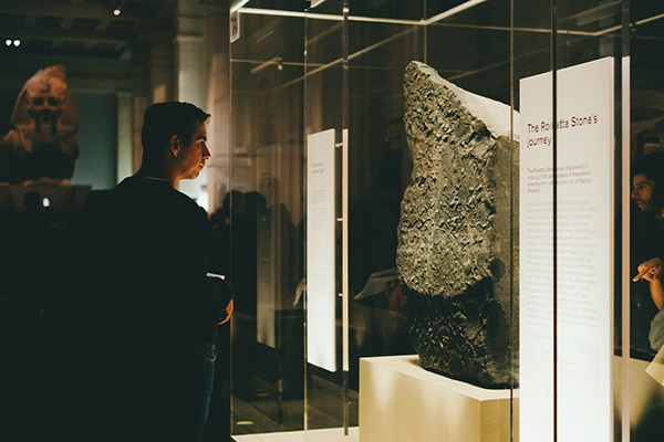 世界の古いものを訪ねて#10 私たちはなぜ古代エジプト美術に惹かれるのか。秘宝をめぐる。 RECOMMEND ロンドンでは今日も、ひとつの石の前に人だかりができています。 大英博物館のRoom 4(Egyptian Sculpture Gallery)。ロゼッタ・ストーンが迎えるその展示室は、館内でも特に人気の高い場所です。文字が刻まれた黒い石に吸い寄せられるように、私もいつも、この展示室を最初に訪れてしまいます。 ロゼッタ・ストーンは、1799年にナポレオン軍がエジプトで発見したもの。後にイギリス軍が戦利品として持ち帰り、ロンドンに移されました。この石をきっかけにヒエログリフが解読され、ヨーロッパでは古代エジプトへの熱が一気に高まったそうです。その後、合法的な発掘だけでなく盗掘なども経て、今日古代エジプト美術と呼ばれるものがヨーロッパにやってきました。ミイラや副葬品、壁画や装飾。展示室に集まった世界中の人々を見ると、その熱が冷めることなく今日まで続いていることがわかります。 そして同時に、私たちが古代エジプト美術に惹かれ続けるのはなぜだろう、と考えずにはいられません。そこには、時代も国も関係のない、人間に共通する何かがあるはずなのです。 そんなことを考えていたこの秋、エジプト・カイロを訪れる機会に恵まれました。 青い空、砂埃、車のクラクションと人々の声。街の喧騒をなんとか抜け、ギザの三大ピラミッドへと向かいました。 果てしなく積み重ねられる石を目の前にすると、これが「人が築いたもの」だとはおよそ理解できません。たとえば、ギザの三大ピラミッドの中でも特に有名なクフ王のピラミッドは、約230万個もの石灰岩ブロックが積み上げられていて、その迫力は圧倒的です。 内部に入り、傾斜した狭い通路を進むと、王の埋葬空間とされる「王の間」が。現在装飾はほとんど残されておらず石棺が置かれているだけですが、巨大なピラミッドがこの部屋のために存在していることを実感できます。 ピラミッドは、王が来世でふたたび生きるための装置として計画されたものだと言われています。死は終わりではなく、一度眠り、別の世界で目を覚ますための通過点と考えられていた。そのため、完全な姿で永遠に眠り続けられるよう、建物そのものが不朽である必要がありました。まるで太陽へと向かうように積み重なる石の山が、権力の誇示以上に「死の向こうで目を覚ます」ことへの執念から生まれたものだと知ると、その輪郭はまったく違ったものに見えてきます。そしてそこに、私たちが古代エジプト美術に惹かれるヒントもありそうな気がしました。 エジプト考古学博物館では、ツタンカーメンの黄金マスクにも出会いました。 今年の9月、ツタンカーメンのマスクは移転準備が進むなか、まだ大エジプト博物館(GEM)へは移されておらず、エジプト考古学博物館に展示されていました。宝石やガラスで象眼された黄金のマスク。豪華な装飾に対して、少年らしさの残る表情が印象的です。 ミイラの頭部に被せるそのマスクもまた、死後の世界を見据えてつくられたもの。王が来世で神としてふたたび生きるための“永遠の顔”として、腐らない素材である金が用いられています。エジプト考古学博物館では撮影が禁止されていましたが、死後の世界で王を守るために添えられたその像には、写真では拾えない緊張がありました。 古代エジプトよりずっと後の時代になりますが、日本の埴輪もまた死者のために置かれた造形であることを思い出します。古墳の上に並べられ、領域を示し、眠る人を守る役割を持っていたと言われる埴輪。砂漠と列島、石灰岩と素焼きの土。場所も素材も異なりますが、亡くなった人の行く先を思い、そのために何かつくるという点は、よく似ていますよね。 それでは、彼らにとって現世はどういうものだったのだろう?謎が深まり、私は次にベルリンへ向かいました。ロゼッタ・ストーンやツタンカーメンの黄金マスクと並んで“三大エジプト秘宝”のひとつとも言われる、ネフェルティティの胸像を見るためです。 ミュージアム・アイランドのノイエス博物館。2階の一間を使って、ネフェルティティの胸像が展示されています。写真撮影は展示室外からのみ許可されており、そのおかげで静かに見ることができました。胸像の落ち着いた表情や質素な色使いと、空間がよく合っています。 ピラミッドやツタンカーメン像が「死後の世界」のために生まれたのに対して、ネフェルティティの胸像は、生きている王妃の姿を示すためにつくられた肖像だと考えられています。モデルとなっているのは、ツタンカーメン王の一世代前の王妃ネフェルティティ。その理想的な顔立ちを、王妃を描くすべての工芸品において同じ比率で再現するため、宮廷の工房で用いる見本として職人が作ったのだそうです。つまりこれは、来世のための像ではなく「この時代の」王妃の面影を素直に残そうとした造形だと言えます。 古代エジプ