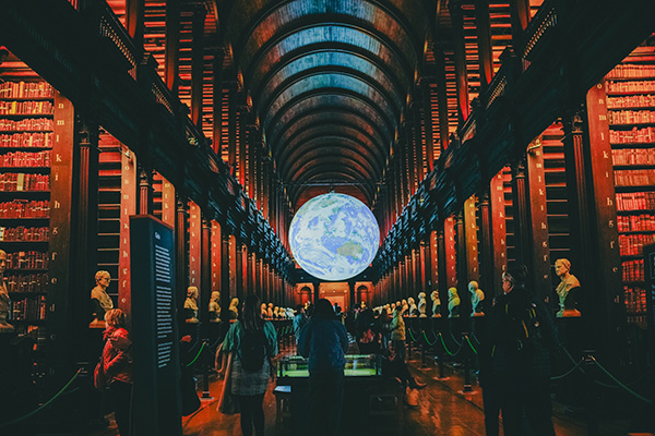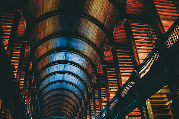 世界の古いものを訪ねて#12 ダブリンの世界一美しい図書館。がらんとした「ロング・ルーム」で考える人生の余白 RECOMMEND 初めての海外での年越し。お正月らしいことは特にしませんでしたが、ツリーが撤去され、少しずつ日常の顔を取り戻し始めたトラファルガー広場を抜けて(「ロンドンのクリスマスより。戦後から続く街で一番控えめなツリー」)ナショナルギャラリーへ向かうと、なんとなく、新年を迎えたのだなという実感がふつふつと湧いてきました。 2026年、午年ですね。 ジョージ・スタッブスの『ホイッスルジャケット』は、ここに来るたびに見入ってしまう一枚。ほとんど等身大の馬が、金色一色の背景のなかに大胆に描かれており、その思い切りのよさにいつも気持ちが高まります。私も、今年もまた駆けるように、しかし一つひとつの景色を慈しみながら、旅を楽しみたいものです。 ただ、新しい旅を始める前に、まずは昨年の暮れに訪れたダブリンの旅を記録したいと思います。 もともと映画「ONCE ダブリンの街角で」のファンだったこともあり、いつかは訪れたいと思っていたダブリン。その近さから後回しにしていたのですが、12月に急きょ数日間のお休みができ、この機会にと出発数日前に決めました。特に目的を決めず、文字通りふらっと。 計画のない旅は、後悔を生むパターンと、良い余白につながるパターンと2つあると思うのですが、ダブリンは後者。そういう旅の仕方こそ正解な場所だったと感じています。 実はダブリンについて「ロンドンを小さく地味にしたような感じだよ」と聞いたことがあったのですが(ちょっと失礼!)、ダブリンはロンドンとはまったく異なります。たしかに、パブ文化や二階建てバス、建物の雰囲気など似たところはありますが、そのそれぞれにダブリンだけの色があり、その微妙な差が、ならではの魅力を作り出している。パブはビールを浴びる場所というよりは仲間と音楽を楽しむ場所として欠かせない存在だし、二階建てバスはグリーンとイエローでダブリンのシンボルであるクローバーを彷彿とさせ、建物の扉はロンドンでは見かけないようなカラフルな色であふれています。街の中心に川が流れている点も似ていますが、とても穏やかで、流れている時間そのものがゆっくり。到着してすぐに、この場所が好きだなと気がついた私は、ただ歩いているだけで楽しいという最高の旅の状態にいました。 マップも開かずに散策を楽しんでいたところ、沢山の人が吸い込まれていくのが気になって訪れたのが、トリニティ・カレッジです。一歩足を踏み入れると街の喧騒はふっと遠のき、歴史の重みを湛えた石造りの学舎に囲まれました。 流れに乗った先にたどり着いたのは、「The Book of kells Experience」と呼ばれる展示室です。 そこでは、アイルランドの至宝と呼ばれる「ケルズの書(The Book of Kells)」が保管・展示されていました。「ケルズの書」とは、8世紀頃に修道士の手によって、羊皮紙の上に細密な装飾と色彩で綴られた聖書の写本。それは単なる書物というより、この国の信仰と知性の執念がかたちになったような存在です。 そして、その貴重な写本を鑑賞したあと、二階へと続く階段を上がり視界が開けた瞬間に目に飛び込んできたのが、この場所のもう一つの、そして最大の見どころ。全長65メートルに及ぶ圧倒的な回廊、オールド・ライブラリーの「ロング・ルーム」でした。 18世紀から続くこの空間は、世界で最も美しい図書館の一つとも呼ばれています。 高い天井まで届くオーク材の本棚。そこに整然と並ぶ、深い色の背表紙を纏った数え切れないほどの古書。梯子がかけられている本棚は、小さい頃に憧れた「美女と野獣」の本棚を思い起こさせます。まるで物語の世界に迷い込んだかのよう。 ただ、現在「ロング・ルーム」では大規模な修復プロジェクトが進んでおり、所蔵書の多くは外に持ち出されていました。このプロジェクトは2028年頃まで続くそう。長い年月を経て傷んだ約20万冊もの本を一冊ずつ丁寧に取り出し、クリーニングして未来へと繋いでいく。その過程で棚の多くは本が抜き取られ、がらんとしていたのです。 せっかくなら、古書で埋め尽くされた様子を見たかった。……そう感じるだろうと思っていたのですが、がらんとしたその風景は、意外にも、そこに流れてきた時間の重みをかえって際立たせていました。時間をたっぷり吸い込んだ木は、今ひとたび荷を降ろし、深呼吸して、また沢山の本を抱えて生きていく。この場所の歴史から見れば、ほんの一瞬の、貴重な休息の時間に立ち会えたことで、私は自分の人生における余白について考えました。 人生を「ロング・ルーム」に例えるなら、それは思い出や知識、そして出会いを、その本棚に埋めていくような作業かもしれません。大切にコレクションしてきた価値ある遺産は、ずらりと並んでいるだけでも圧巻だし、壊れるのが怖いからあまり外に持ち出したくない